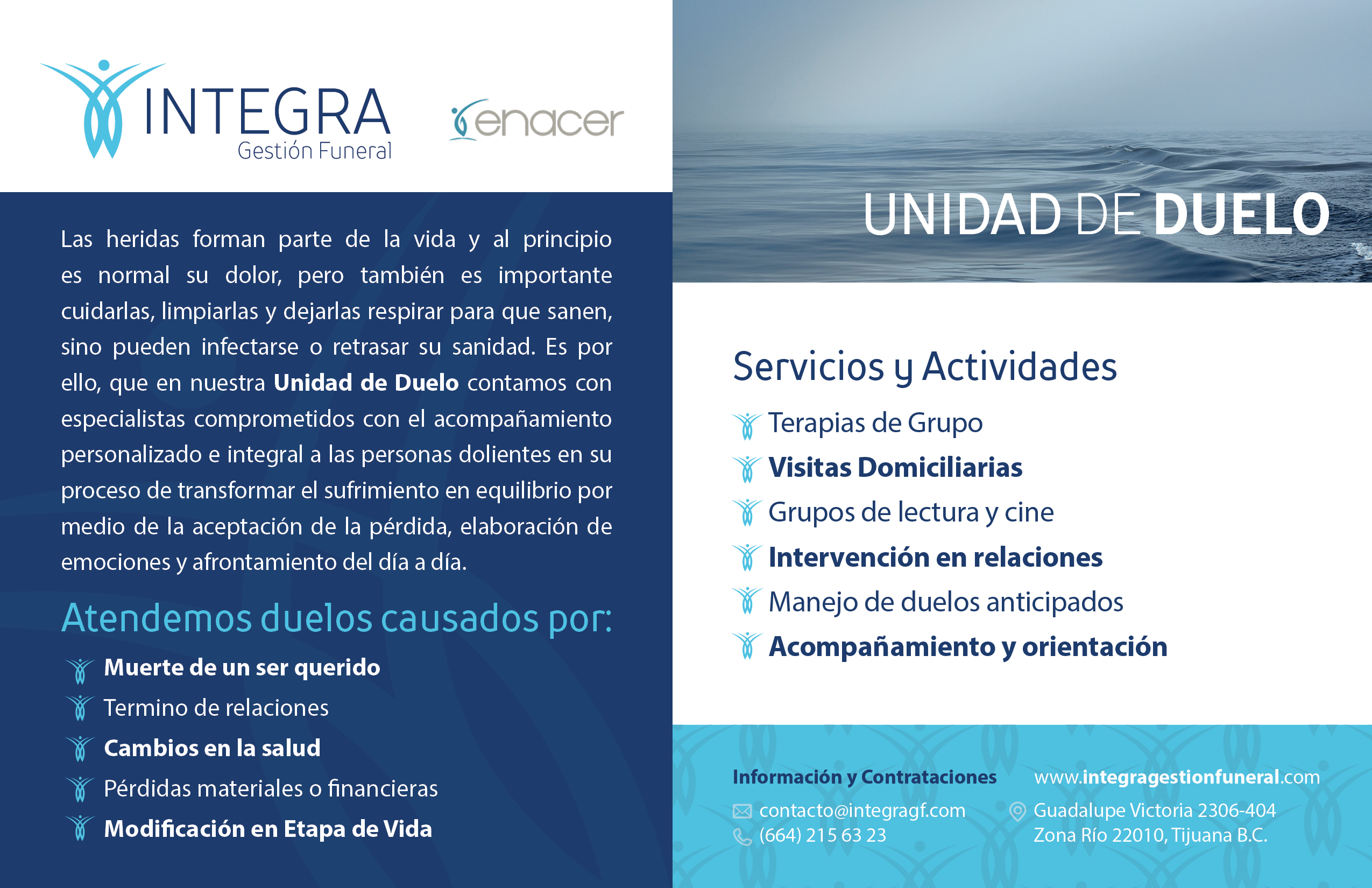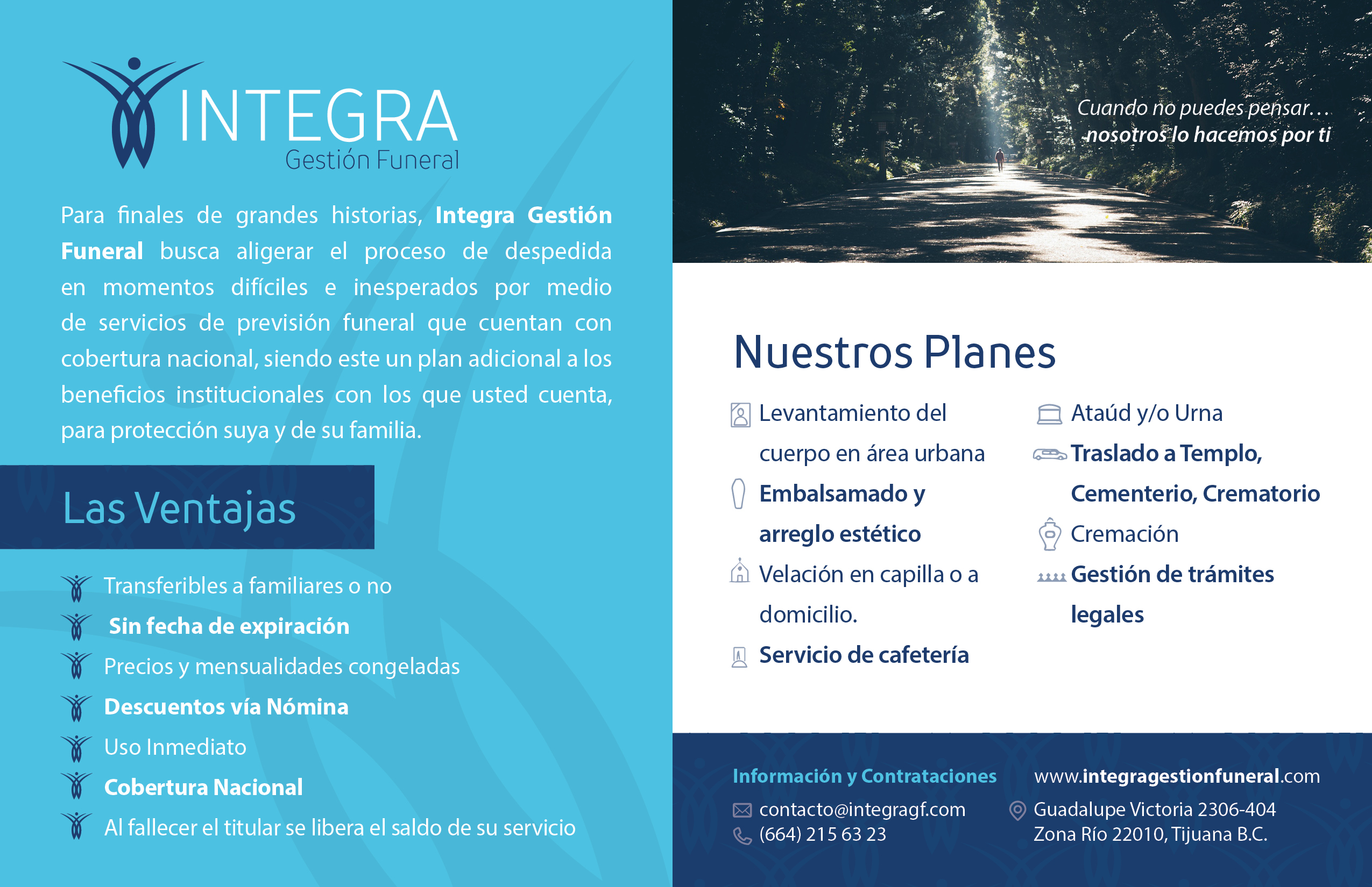 Gestionamos servicios funerarios dentro del estado de Baja California y a nivel nacional, lo cual significa que se puede adquirir el servicio funeral en el estado y puede ser otorgado en cualquier parte de la república mexicana en el momento que se requiera.